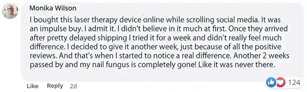 Now, I can confidently say that my nails are healthier than they’ve been in years . I no longer dread putting on shoes or showing my feet in public. This device has truly transformed my nail health, and I couldn’t be happier. It’s given me hope for a future where I won’t have to worry about nail fungus holding me back. Thanks FungaBeam!”