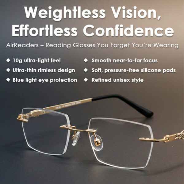 AirReaders are designed to feel light, modern, and nearly invisible on your face. Unlike bulky, outdated frames, they feature a rimless, ultra-lightweight design (just 10 grams) that blends naturally into your look while delivering clear, reliable vision.