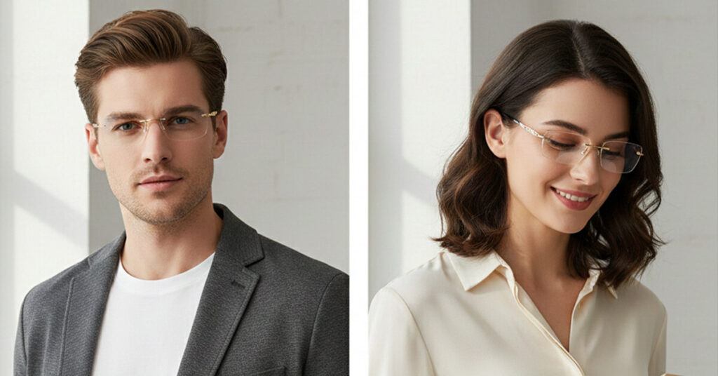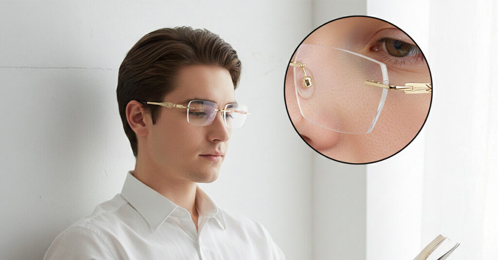 No—that’s exactly what they’re designed to avoid. The rimless, low-profile design keeps attention on your face, not your glasses. They look modern, subtle, and refined, helping you feel confident wearing them both at home and in public.
