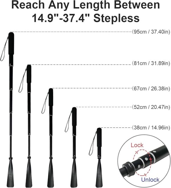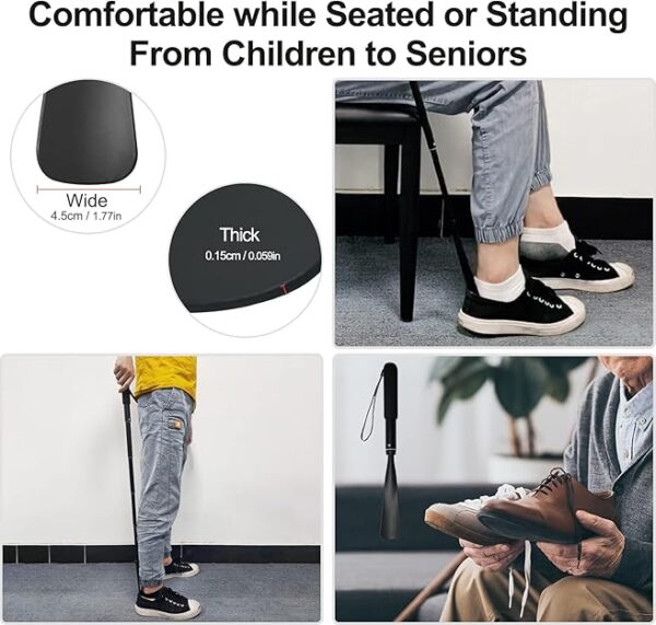 Adjusts anywhere from 15″ to 37″, so it meets you exactly where you are — perched on the edge of the bed, parked on a hallway bench, or standing at the front door in a rush. No awkward angles, no compromising your posture just to reach your feet.
