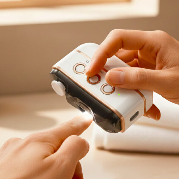 Yes, it’s allowed in carry-on luggage since it’s battery-powered and the blade is enclosed. The compact size fits easily in a toiletry bag. Just make sure it’s fully charged before you travel, or bring your USB-C cable to charge it at your destination. Many travelers say it’s great for hotels where the lighting isn’t ideal for nail trimming.