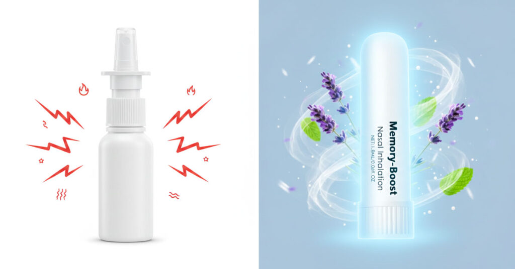 Most people notice mental clarity within 1-2 minutes of inhaling. The olfactory pathway connects directly to your brain’s memory center, so there’s no waiting for digestion like with pills. You’ll feel the “cotton stuffed” sensation lift and thoughts become clearer almost immediately.