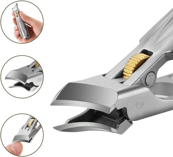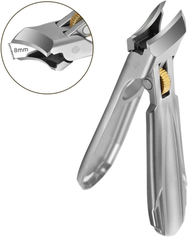 Yes, the wide jaw opening is specifically designed for thick nails that regular clippers struggle with. The heavy-duty stainless steel construction and leverage design give you enough cutting power to handle even the thickest big toenails in one clean cut.