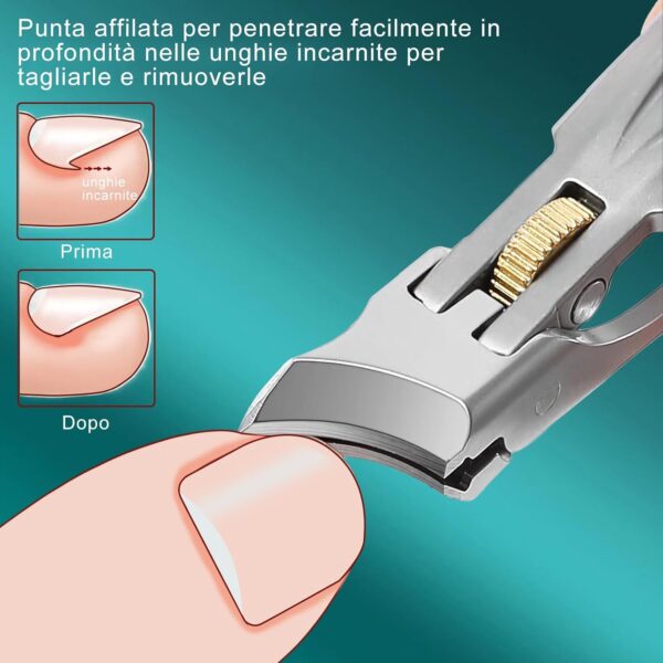 Position the angled tip at the corner where the nail is digging into your skin. The curved blade naturally follows your nail’s shape, letting you cut the ingrown portion without digging into healthy skin. Start with small cuts and work gradually to avoid overcutting.