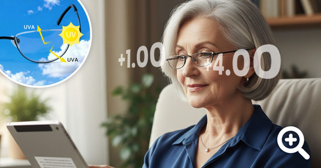 The UV protection shields your eyes from harmful rays, and the anti-glare coating reduces reflections. You can comfortably read outdoor menus, maps, or your phone screen even in bright conditions without squinting or eye strain.