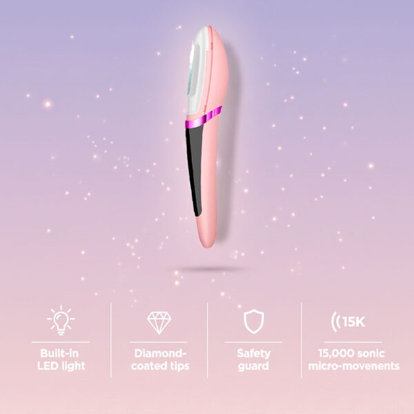 EdgeTrim Pro uses 15,000 sonic micro-movements per minute to loosen dead skin cells and lift peach fuzz while the diamond-coated tip gently exfoliates.