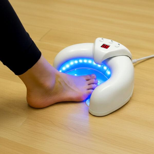 It’s a home-use device that uses low-level laser therapy (LLLT) combined with heat to treat toenail fungus by targeting the nail bed where fungi reside.
