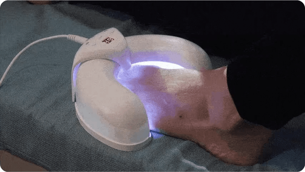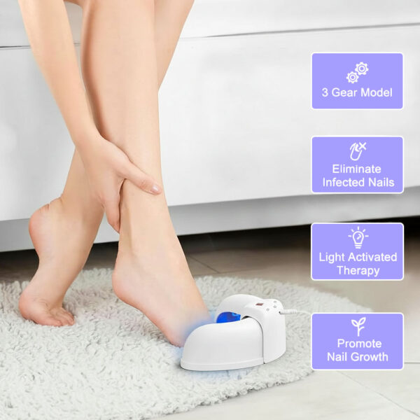 You place your affected nails inside the device, turn it on, and apply the treatment for about 7 minutes per day. The laser light penetrates the nail and disrupts fungal cell activity while helping the nail grow healthier.