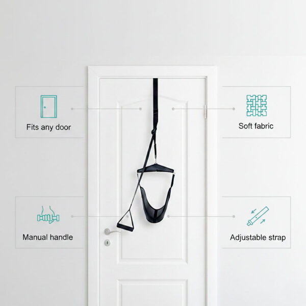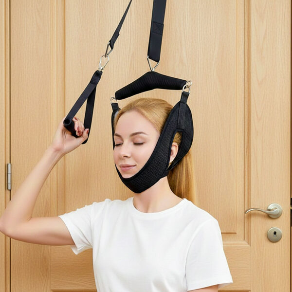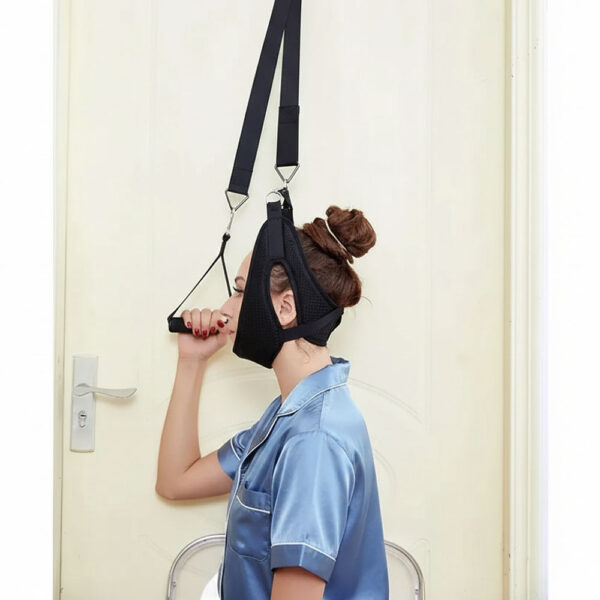 No, the device operates completely silently. There are no motors, pumps, or mechanical parts that create noise. The only sounds you might hear are the soft fabric adjusting when you first position yourself or the gentle creak of the door if it’s not well-oiled—but nothing from the traction device itself. This makes it perfect for apartment living, shared office spaces, or using it early in the morning or late at night without disturbing family members or roommates. Unlike inflatable traction collars that have noisy pumps, or clinic traction machines with motors, this manual system gives you quiet, peaceful therapy sessions. You can even use it while others are sleeping in nearby rooms.