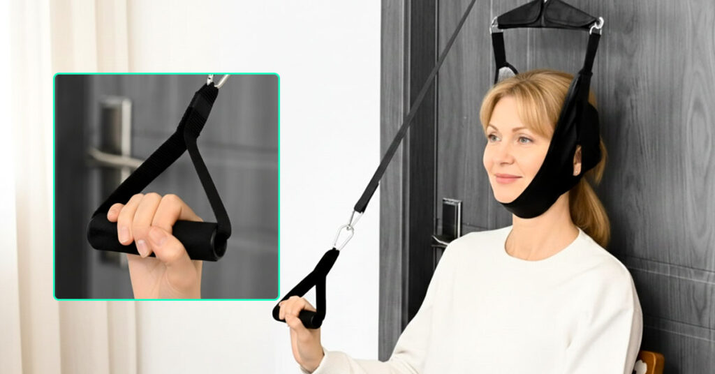 Correct traction should feel like a gentle, comfortable stretch—similar to the relief you get from slowly tilting your head back and looking up at the ceiling, but sustained. You should feel mild pulling sensation through your neck, a sense of lengthening in your spine, and possibly some pressure release in your shoulders. What you shouldn’t feel: sharp pain, shooting sensations into your arms or hands, increased headache, or the need to tense your neck muscles to tolerate it. Start conservatively by supporting most of your weight with your legs and only leaning back slightly. The manual handle lets you test different intensities—pull gently and hold for 30 seconds, then assess how it feels. Your sweet spot is where you feel therapeutic stretch without any pain or numbness. As you use it over days and weeks, you’ll develop a feel for what works for your body, and you may gradually increase intensity as your tolerance builds.