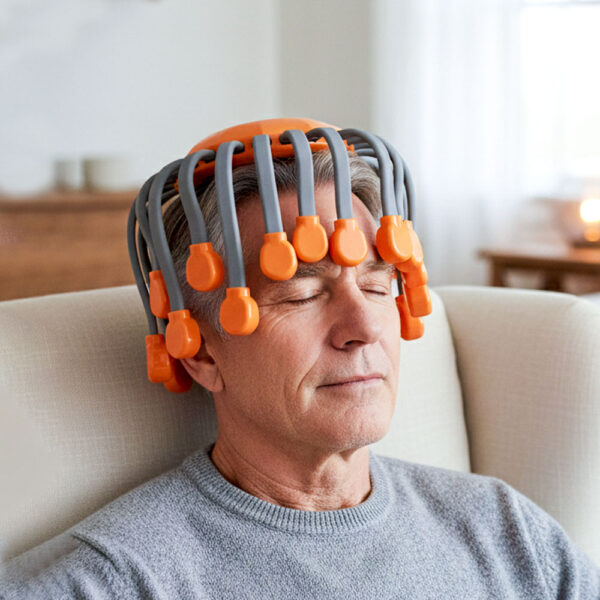 It’s perfectly fine to share among family members as long as you clean it between users. Many households keep one in a shared space like the living room or designate it as a “family wellness tool.” Just wipe down the silicone nodes with a sanitizing cloth after each person uses it. The adjustable design accommodates different head sizes, making it practical for multiple people.