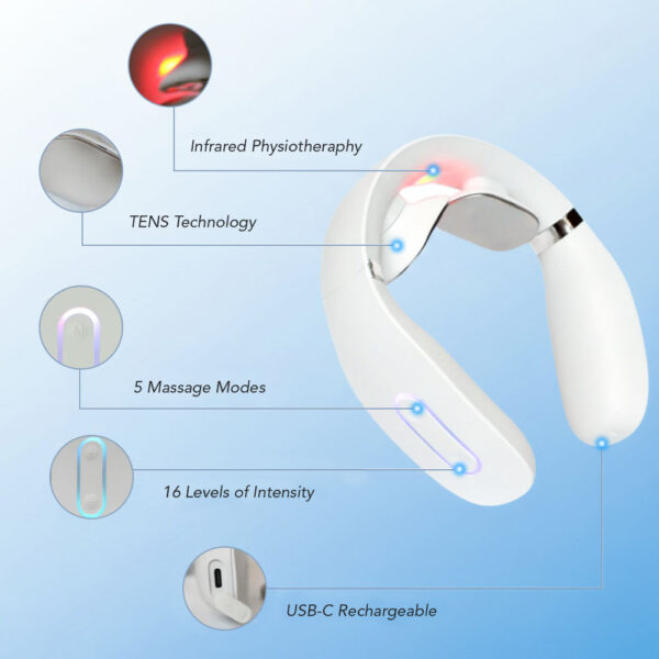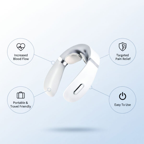 The TheraNeck uses Electronic Pulse Massage (EPM) technology to send gentle micro-pulses through the skin. These pulses help relax muscle tension, support circulation, and encourage your body’s natural feel-good responses. In short — it helps your neck muscles loosen and release stress so you feel comfort and relief.