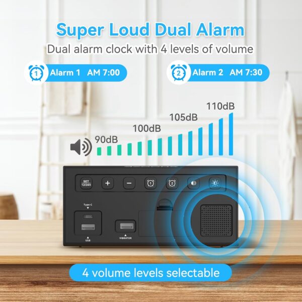 Whether sound just doesn’t cut it for you, or you genuinely can’t hear a standard alarm, the combination of 110dB sound and full-body bed vibration covers both. It’s designed around the reality that not everyone wakes up the same way.