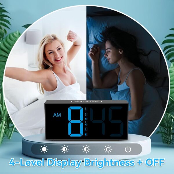 That’s exactly what the 5-level brightness control is for. Turn it all the way down at bedtime so it’s barely a glow, then crank it up in the morning when you need to read the time clearly. It doesn’t turn off completely, but the lowest setting is dim enough that most people stop noticing it.